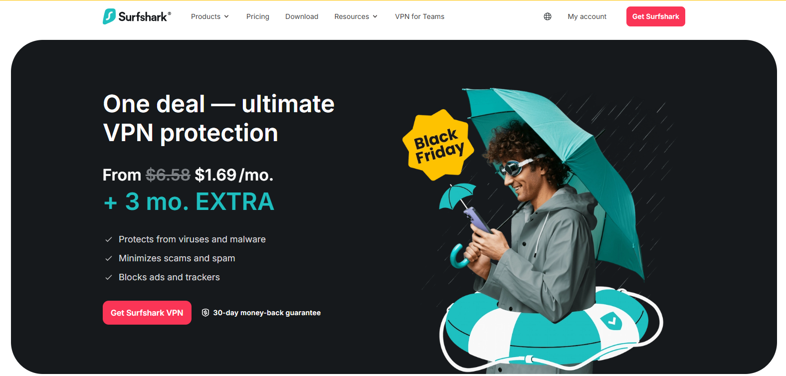 This offer includes Surfshark’s premium bundle (VPN + extras) at an excellent discount and added free months